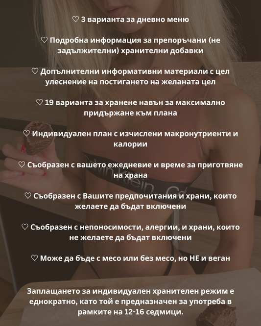 След дългогодишен опит с различни треньори и лутане без ясна посока, разбрах каква е моята мисия-да помагам на други млади момичета като мен да спестят време, усилия, и проба-грешка и да се впуснат във фитнеса с ясен план за действие и професионална насока. Така създадох фитнес общество, в което всеки да получава не само режим и програма, но и знания, които да са му от полза за цял живот в постигането и поддържането на добра форма и здравословно състояние!